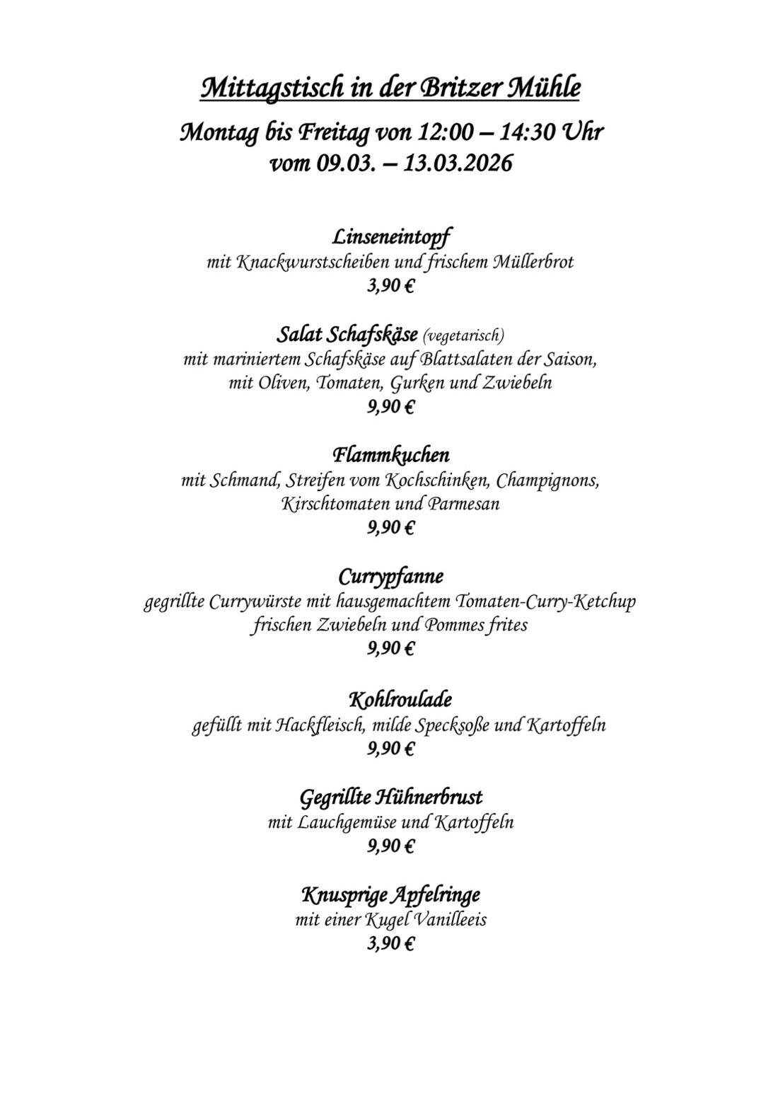 Das Britzer Mühlen Team freut sich sehr, dass Sie Ihre Feierlichkeit in unserem Hause ausrichten möchten. In dieser Mappe finden Sie unsere Menü- und Buffetvorschläge.
