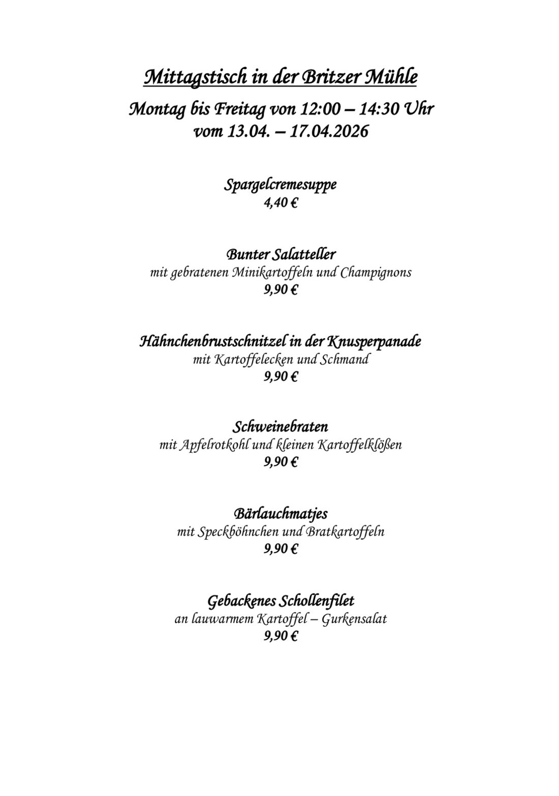 Das Britzer Mühlen Team freut sich sehr, dass Sie Ihre Feierlichkeit in unserem Hause ausrichten möchten. In dieser Mappe finden Sie unsere Menü- und Buffetvorschläge.